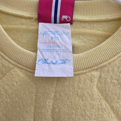 Moods of Norway genser i ull, flerfarget, størrelse L for damer. Genseren har et stripete mønster med farger som grå, blå og oransje. Materialet er ull, som gir varme og komfort.