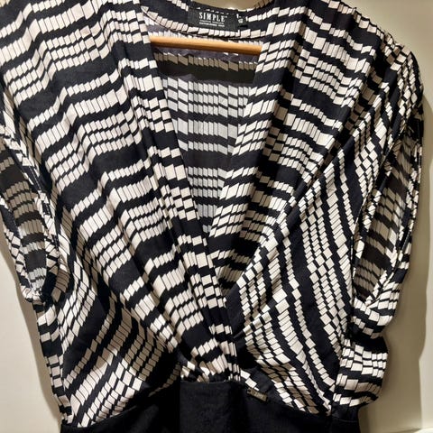 Selger en nydelig og stilren kjole fra SIMPLE – klassisk pepita-mønster kombinert med sort gir en veldig elegant og feminin silhuett.