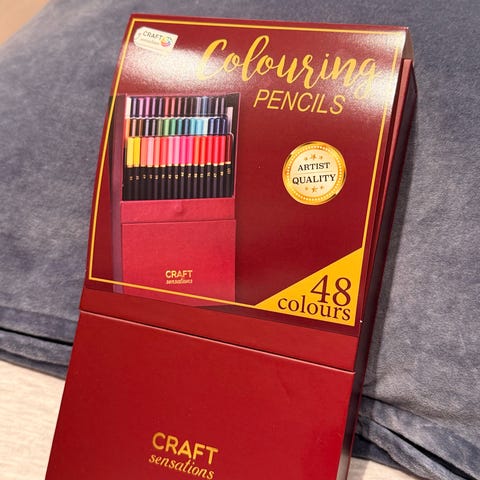 Reisesett for kunstnerutstyr med fargeblyanter og maling