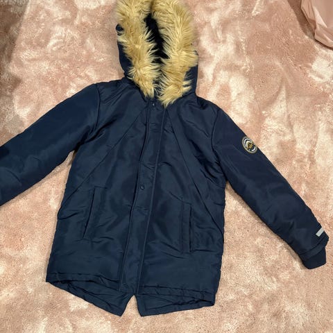 H&M vinterjakke i blå farge, størrelse 140 for gutt.