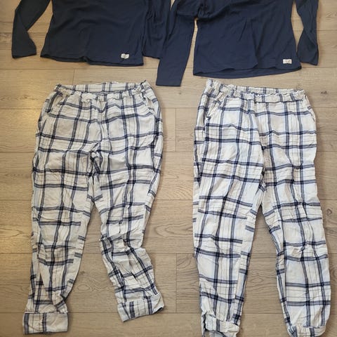 Tufte wear pysjamas med pysjbukse og trøye i bambus og bomullsblanding. Trøya er mørkeblå og buksa lys turkis/grønn. Buksa var litt strammere enn de andre tufte owl pysjene jeg har, så denne ble liggende i skapet, og er kun prøvd på.