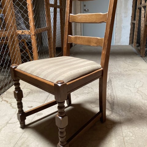 Alder og bruksspor gir stolen særpreg og sjel – dette er ikke nyprodusert «shabby», men ekte slitasje.
