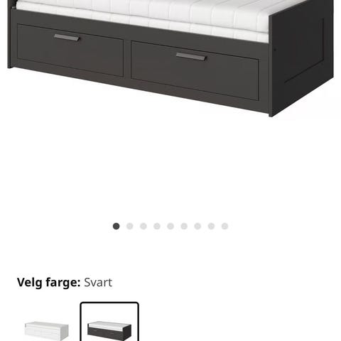 IKEA Brimnes dagseng (svart) inkl. 2 tilhørende madrasser. Praktisk seng som enkelt kan trekkes ut til en dobbelseng. Godt med oppbevaringsplass i skuffene under.