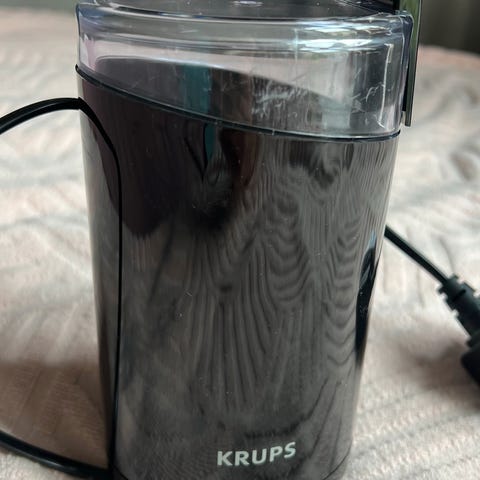 Krups kaffekvern i svart farge. Elektrisk kvern for kaffebønner med justerbar innstilling for kverningsgrad. Kompakt design egnet for hjemmebruk. Denne er svært lite brukt, har kanskje malt opp 2-3 kaffeposer.