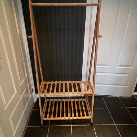 Klesstativet er tatt fra hverandre, alle deler inntakt. Klesstativ fra jysk selges da det ikke er plass til det.