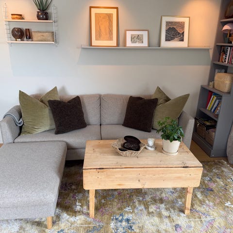 Sofaen er ca 6 år gammel og har vært godt ivaretatt. Den fremstår hel og pen, uten rifter eller synlig slitasje. Putene er faste og holder fasongen godt og sittekomforten er fortsatt svært god. Stoffet er lett å tørke av, noe som gjør sofaen perfekt for hverdagsbruk.