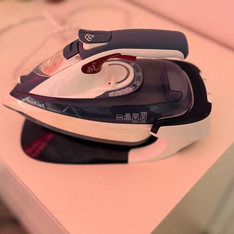Tefal Express Anti-Calc dampstrykejern i blå og hvit farge.