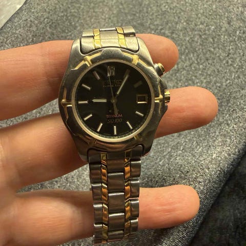 Selger en flott two-tone titaniun seiko-klokke. Papirer og eske ble kastet under forrige flytting, men er 100% original.