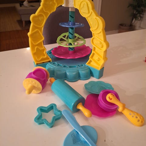 Stor Play-Doh iskremmaskin/desserttårn med flere former og deler.