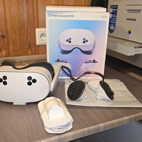 Meta Quest 3S VR-brille med kontrollere i hvit farge, 128 GB.