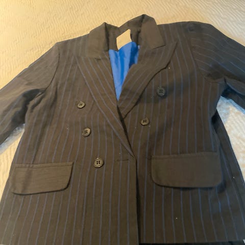 Mørke blå dress med gliter, dresset kommer med en vest og en sløyfe. Passer til 11-14 aringer .Jakken har en knappelukking og er designet med en slank passform. Vesten har knappelukking foran og matchende detaljer.