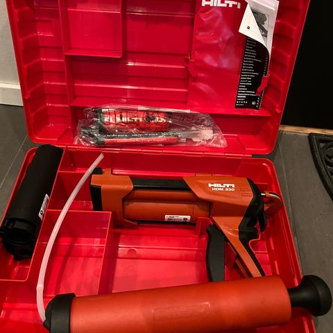 Injeksjon av Hit forankringsmørtel for feste av ankerstenger og armeringsjern i betong, mur og tegl.
