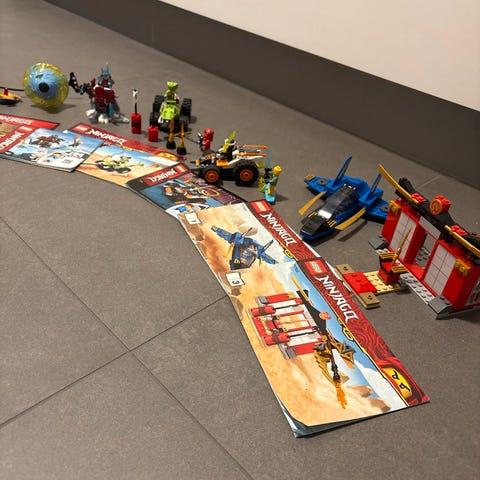 Titanium ninja tumbler 70588 mangler noen få deler, men har alle figurer. Instruksjoner finner du på nett (gratis).