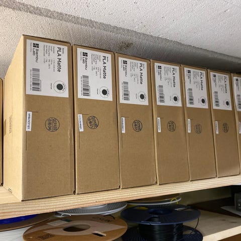 Basic PLA som står i AMS kan medfølge for 200,- pr rull slik at du har noe å starte med.
