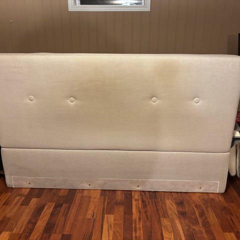 Sengegavl selges. 180 bred, 113 høy. Grå, men et supert utgangspunkt for å designe egen?