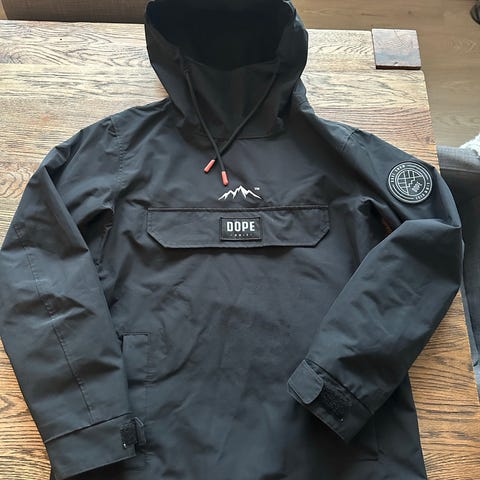 Dope jakke i størrelse S for herre. Fargen er svart, og plagget er laget av polyester. Genseren har hette og frontlomme, egnet for hverdagsbruk og ski.