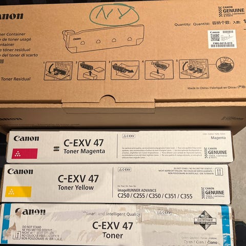 Selger et komplett sett med nye ubrukte høykapasitetstonere til HP fargelaserskrivere.
