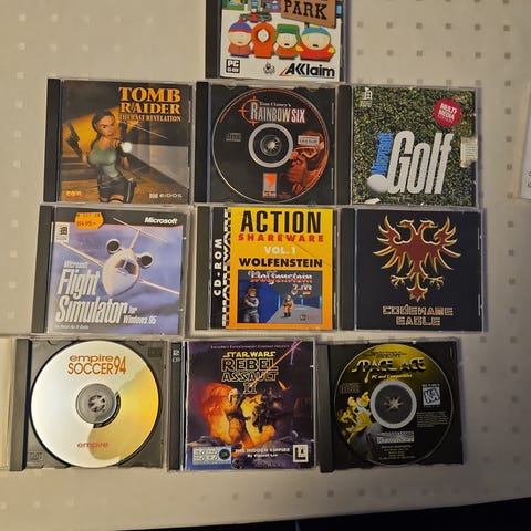 Noen brukte, noen litt brukte, noen helt nye og i plastikk. Selges samlet.