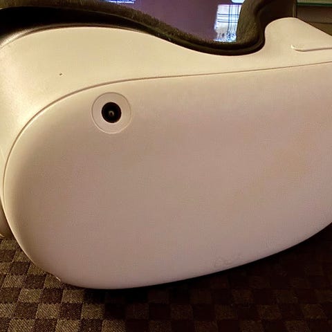 Meta Quest 3S VR-headset med 128 GB lagringskapasitet i hvit farge. Headsettet leveres med to trådløse kontrollere. Egnet for virtuell virkelighetsopplevelser og spill. Kontakt meg for mer informasjon