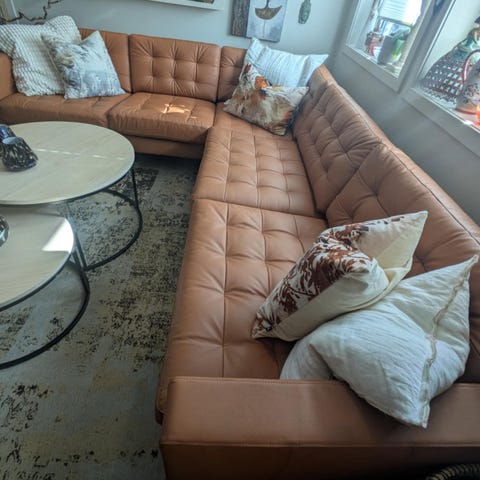 Stressless skinnsofa i brunt skinn kjøpt på Fagmøbler for ca 10 år siden. Kostet da 67.000. Sofa har normal bruksslitasje og har ingen åpenbare mangler. Vippe funksjon på seter etc. samt ekstern puff med oppbevaring. Må hentes.