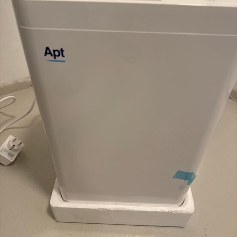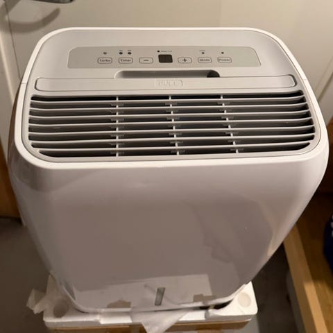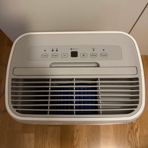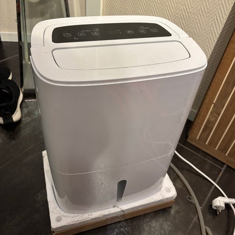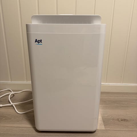 Wood's luftavfukter i hvit farge. Enheten er designet for å redusere fuktighet i innemiljøer og bidra til bedre luftkvalitet.
