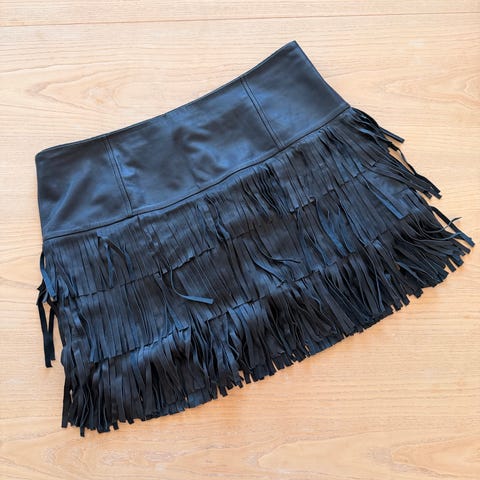 Skinn skjørt med lapper. Nytt. Eksklusivt og dyrt Italiensk merke som spesialiserer i skinn klær. Kjøpt hos eksklusiv butikk på Frogner, Oslo. Veldig mange fine detaljer. Skjørtet er i 2 halv deler satt sammen med glidelås. Se bildene. Merke: Bendetta Novi. Se linken nederst i annonsen .