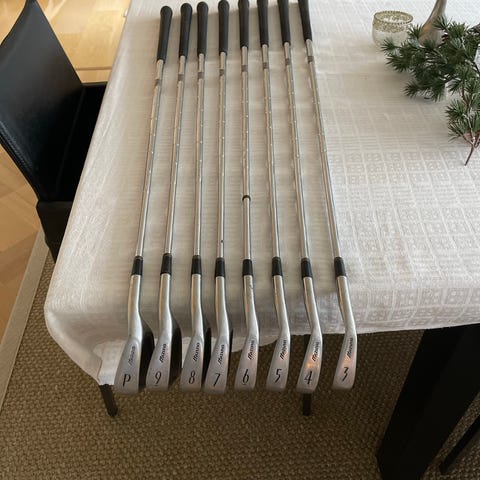 Jernene har normale bruksspor og noen synlige hakk/merker i slagflater og kanter, spesielt på de kortere jernene. Dette er kun kosmetisk og påvirker ikke spillbarheten. Grooves er fortsatt godt definerte og køllene fungerer som de skal.
