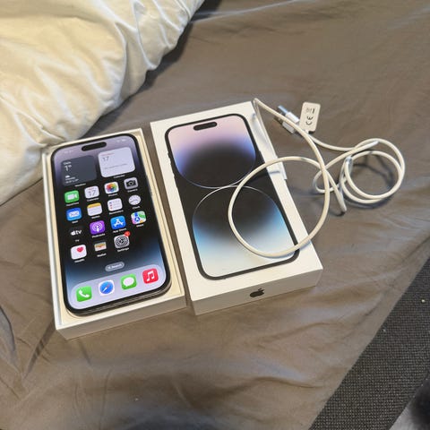 Apple iPhone 15 Pro mobiltelefon med 256 GB lagringskapasitet. Enheten har en svart farge og er produsert i 2024. Telefonen har iOS 16.3 operativsystem og leveres med original emballasje. Batteristatus viser 88 % kapasitet. Modellen er iPhone 15 Pro. pruting er velkommen