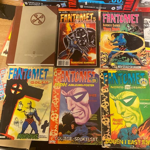 Ca 80 blader med Fantomet fra 1978 til 1984, alle med omslag intakt. Selges helst samlet men kan sjekke hvis noen er ute etter spesielle nr