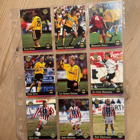 Flere motiver viser spillere i klubbdrakter fra Premier League og andre store ligaer.