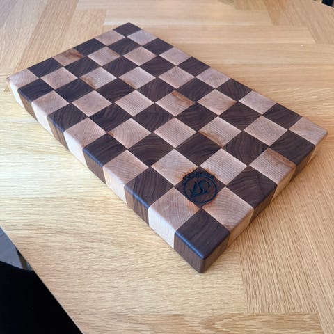 Solid og slitesterk endevedsskjærefjøl laget i amerikansk lønn, eik og mahogni. Skånsom mot kniver og godt egnet til daglig bruk. Hver fjøl jeg lager er unik i mønster og fargespill.