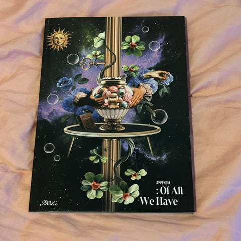 3 album + 2-3 extra photocards + litt sationary/decor (washi tape, stickers osv.)