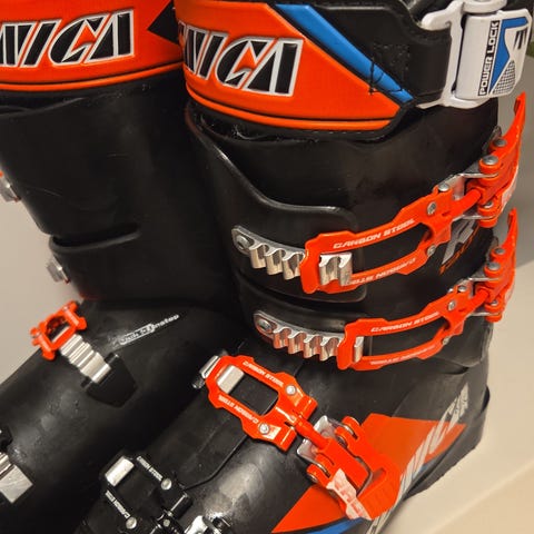 Støvlene fremstår som meget pent brukt, med kun minimale bruksspor. Ingen sprekker, skader eller tekniske feil. Spenner, såler og innerstøvel er i svært god stand – se bilder.