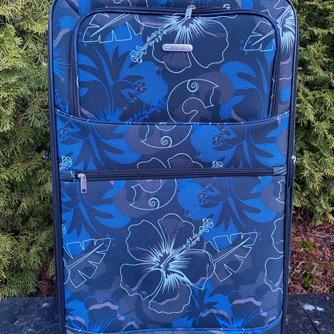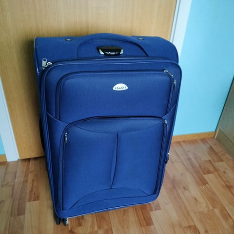 Stor stoff koffert med hjul og teleskophåndtak. Designet for unisex bruk, egnet for reise og oppbevaring. Kofferten har flere lommer og et romslig hovedrom med stropper for sikker oppbevaring av klær og andre eiendeler.