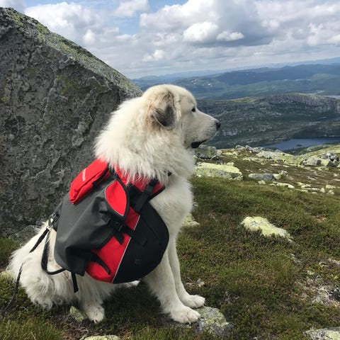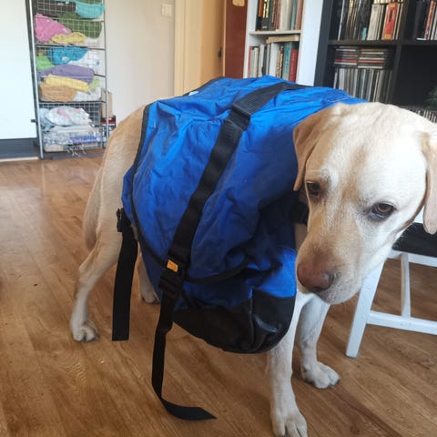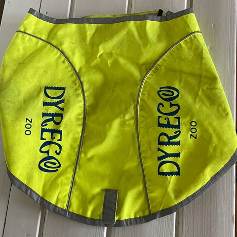 Det er helt nytt, sydd på mål til stor hund. Dette er kun prøvd på. (Han er borte, og det passer ikke på de to jeg har) Det er 75 cm langt.