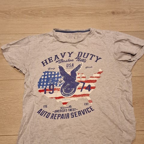Cedar Wood State T-skjorte i størrelse L for menn. T-skjorten har grå farge og er laget i et lett materiale. Den har trykkdetaljer på forsiden.