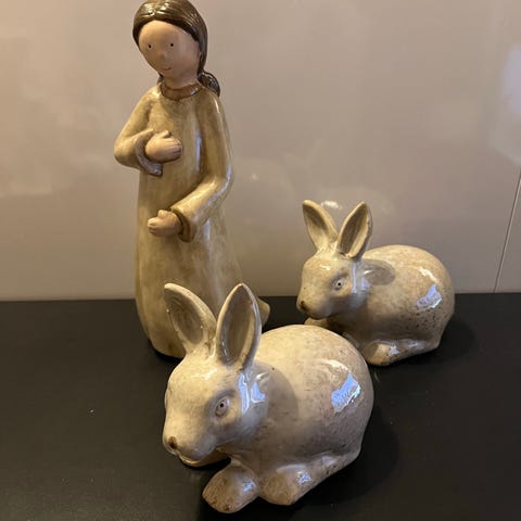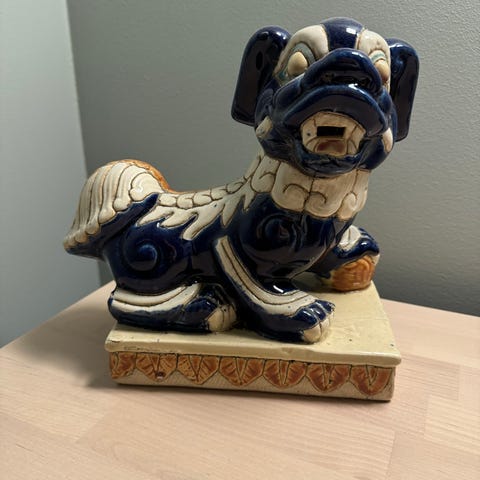 Keramisk hundeskulptur hvit