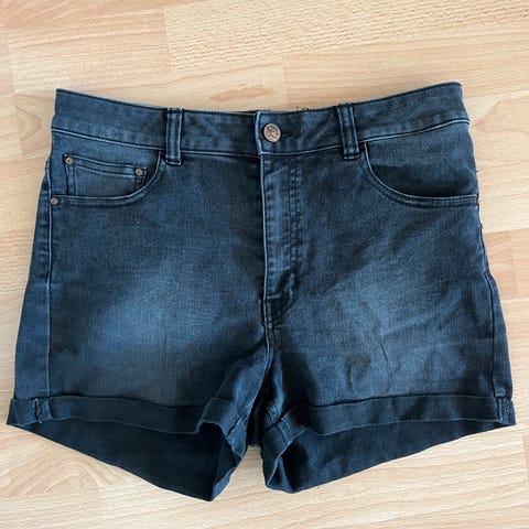 Korte med brett i bunnen. High waisted i livet.