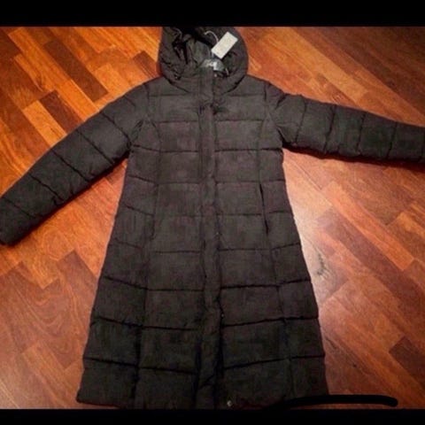Lang, figursydd boblejakke. Sidelommer med glidelås. Hette med snøring. Glidelås og vindstolpe med trykk-knapper. Jakken er impregnertmed Bionic finish® eco, vilket gjør atden er vannmotstanden.