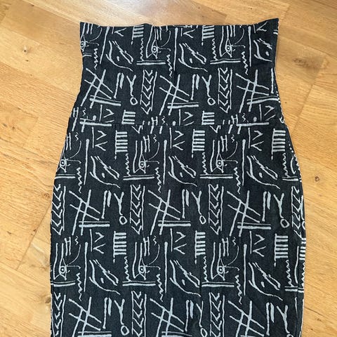 Lekkert skjørt fra Bitte Kai Rand. Str ca 42, se mål. Ikke foret. Polyamid og viskose. Elastisk. Omkrets liv ca 80 -90 cm. Lengde fra liv til skjørtekant ca. 56 cm.