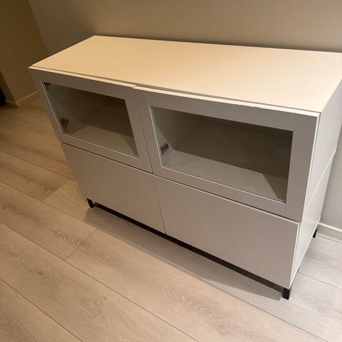 Hylle fra IKEA i modellen Vittsjö i fargen hvit med glassplate i midten.