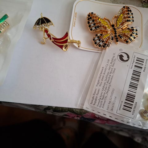 4 av disse er aldri brukt og uten defekter, mens på den 5. (rosa) mangler en av de minste pynt-steinene.