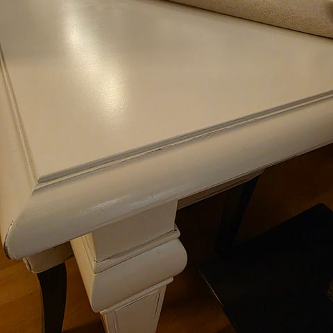 Hvitt kjøkkenbord/spisebord gis bort. Trenger et strøk maling pga litt tusj-flekker. Ellers et solid og praktisk bord. Det har to klaffer som oppbevares inni bordet, så det kan enkelt trekkes ut og gi rom for flere. 140x84 cm stort. Hver klaff er 40 cm, så det kan bli enten 180 eller 220 cm langt alt etter om man tar en eller to klaffer i. Holdes ikke av, men gis bort til første som kan hente.