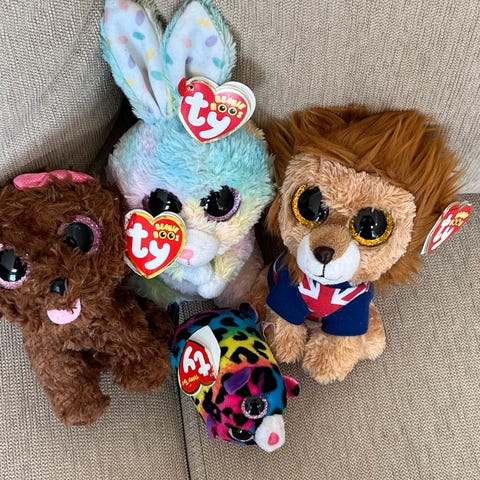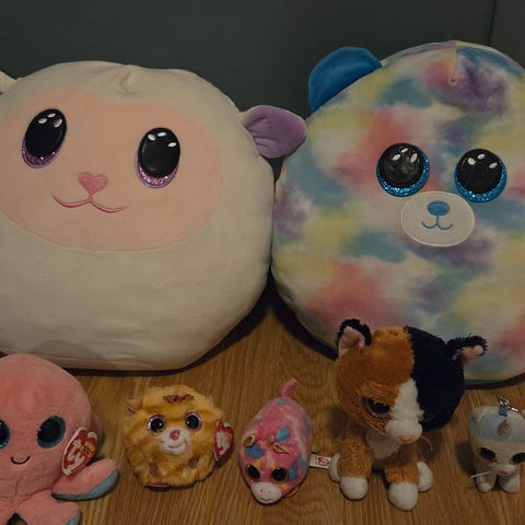 Ty bamser i mykt materiale. To ulike figurer. I god stand.