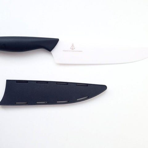 Fem kniver i fra Porsgrund porselænsfabrikk, inkl diamantsliper som er perfekt til sliping av knivene.