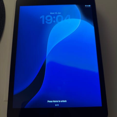 Apple iPad nettbrett med 128 GB lagringskapasitet. Enheten har en skjerm med berøringsfunksjon og er utstyrt med Wi-Fi-tilkobling.