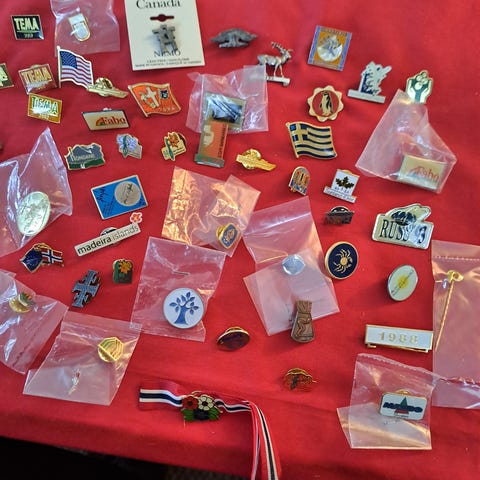25 pin fra inn og ut land. Fra forskjellige organisasjoner og forbund. Noen like. 250 kr vez kjøp av alle. 35 kr ved kjøp av enkelte. Sender gjerne