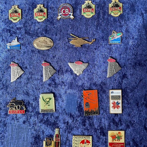 25 pin fra inn og ut land. Fra forskjellige organisasjoner og forbund. Noen like. 250 kr ved kjøp av alle. 35 kr ved kjøp av enkelte. Sender gjerne
