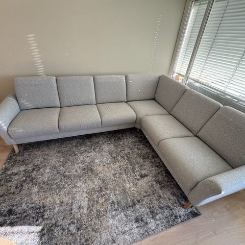 Pent brukt hjørnesofa med sjeselong fra Møbelringen til salgs.
