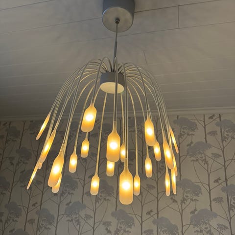 Pen pendellampe i grått. Noen små riper,synes ikke veldig godt.